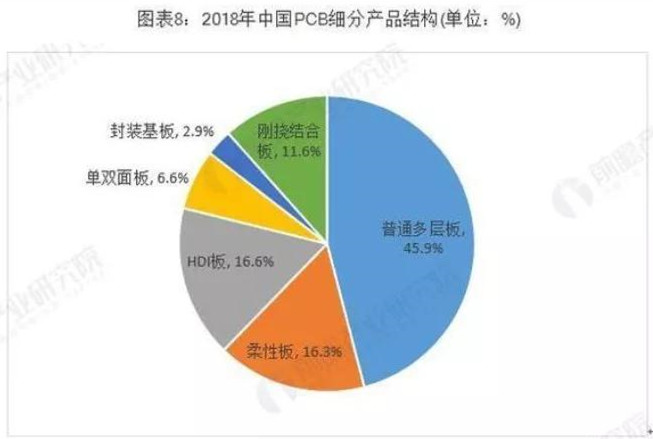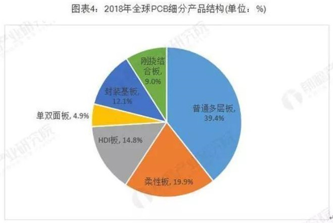 根據(jù)Prismark的統(tǒng)計,2018年全球PCB細(xì)分產(chǎn)品的市場結(jié)構(gòu)如下: